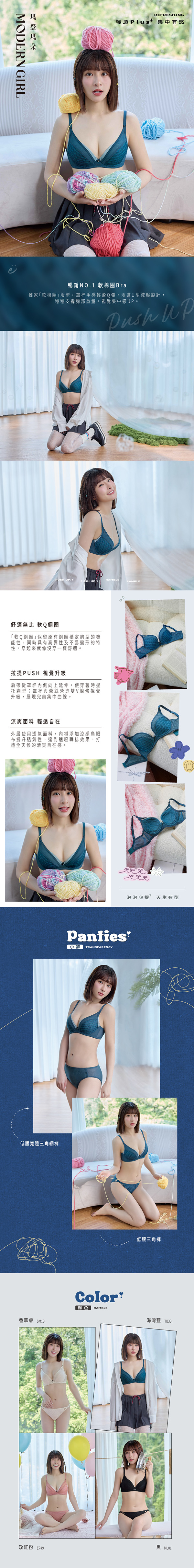 .3/4罩杯搭配低脊心版型,集中托高塑造性感曲線。