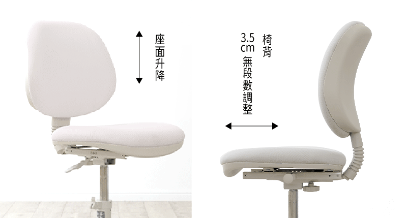 ◎ 椅背深度無段調整 (調整方式:底盤下方旋鈕,調整完畢後務必記得鎖上)