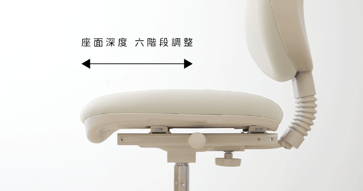 ◎ 座面深度6階段調整,成長適配 (調整方式:底盤左側圓形把手往外拉)
