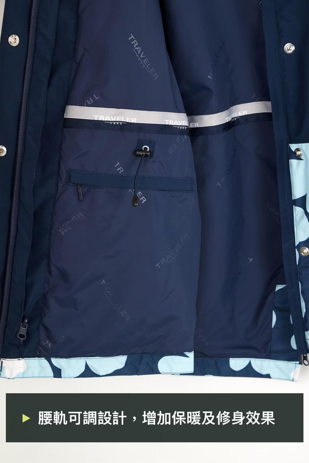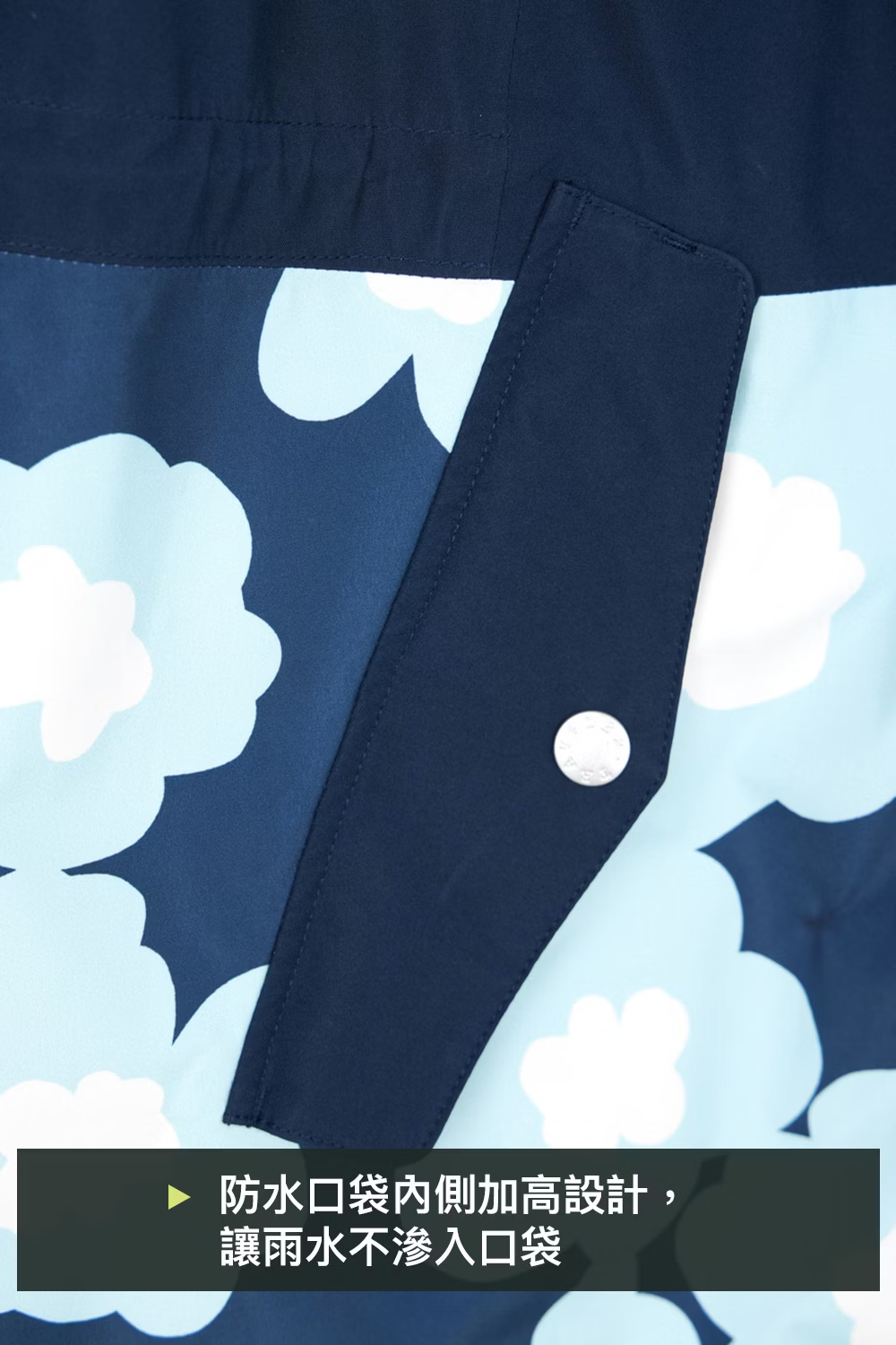 .表布為Gore-Tex 2L防水透氣布料,下襬剪接印花布