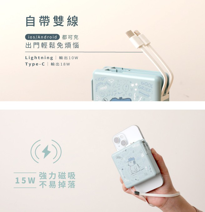 自帶雙線、雙快充、超強磁吸✦