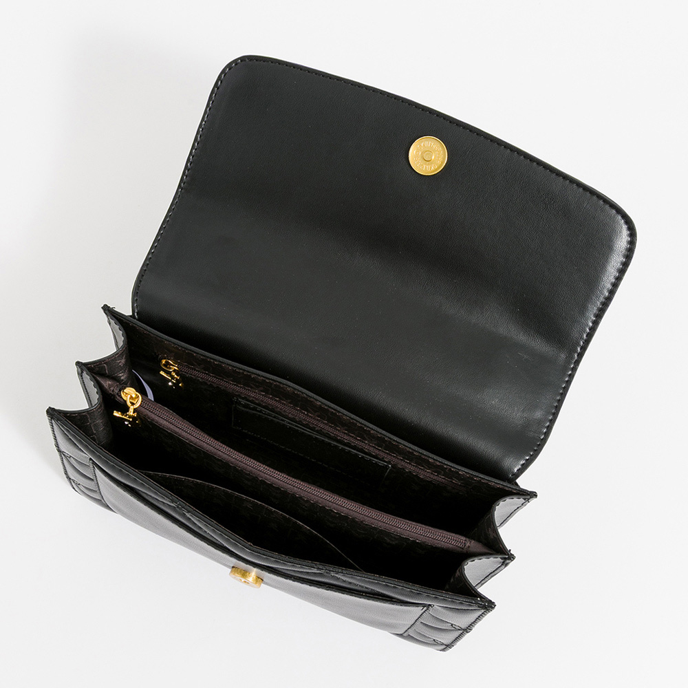 黑色,是時尚界永不退潮的經典,而精湛的绗縫工藝,更是對奢華與質感的最佳詮釋。系列將菱格绗縫與俏皮的兔耳線條完美融合,呈現出品牌獨有的精緻立體紋理,溫潤古銅色五金與深邃的黑色系,形成巧妙對比,完美呼應,在光影流轉間散發低調卻不容忽視的吸引力。