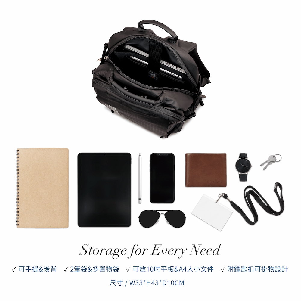 .可容納10吋平板/A4文件或日常用品